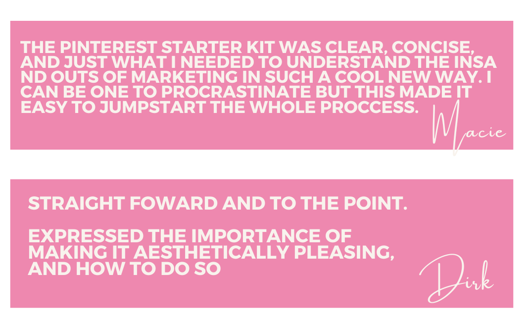 You don't have to spend weeks, months, years, trying to learn how to use Pinterest for your business, set up a business account, create a follow worthy profile, or create shop-able pins with scroll stopping graphics! We'll teach you how to get started with out Pinterest for Beginners Course!